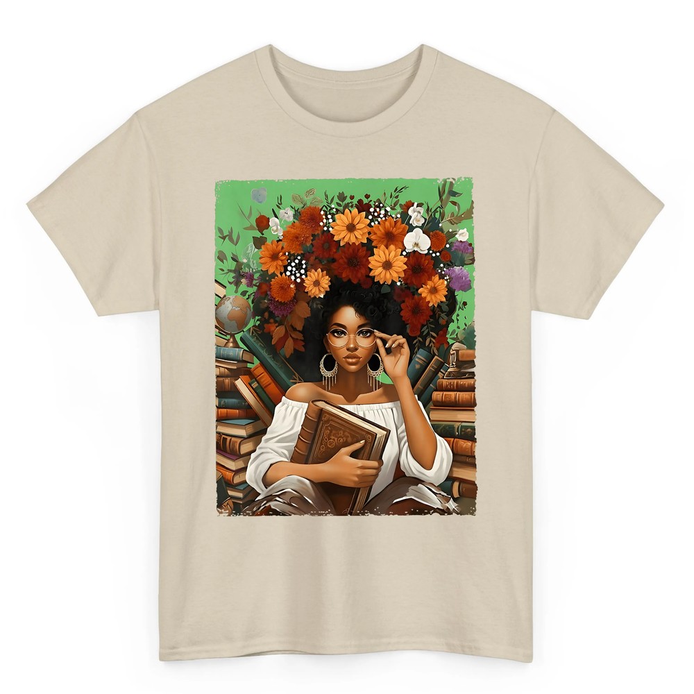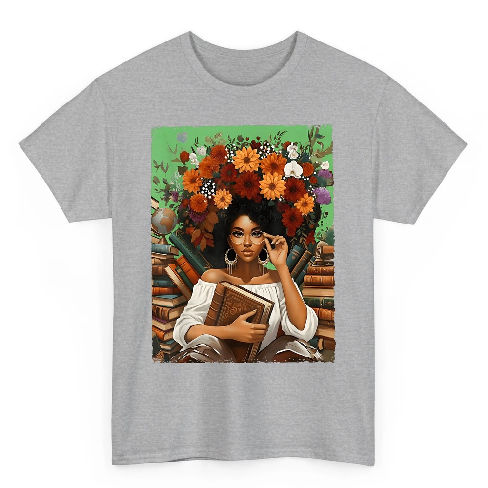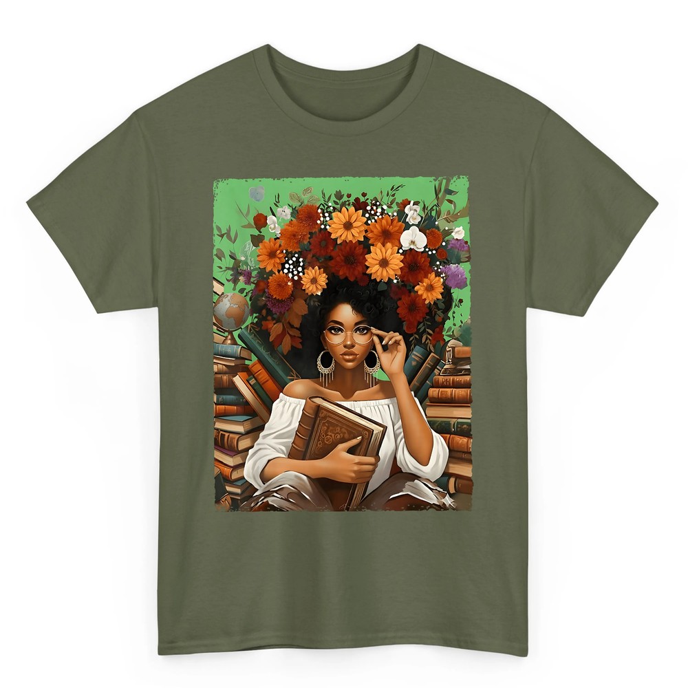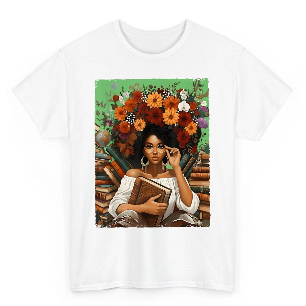 Have a look at the detailed information about Black History Month Black Afro Girl Women Book Lovers Floral T-Shirt below!