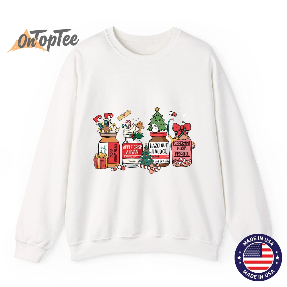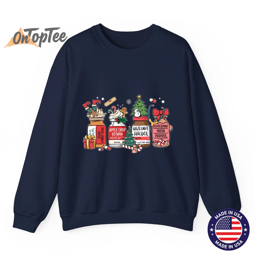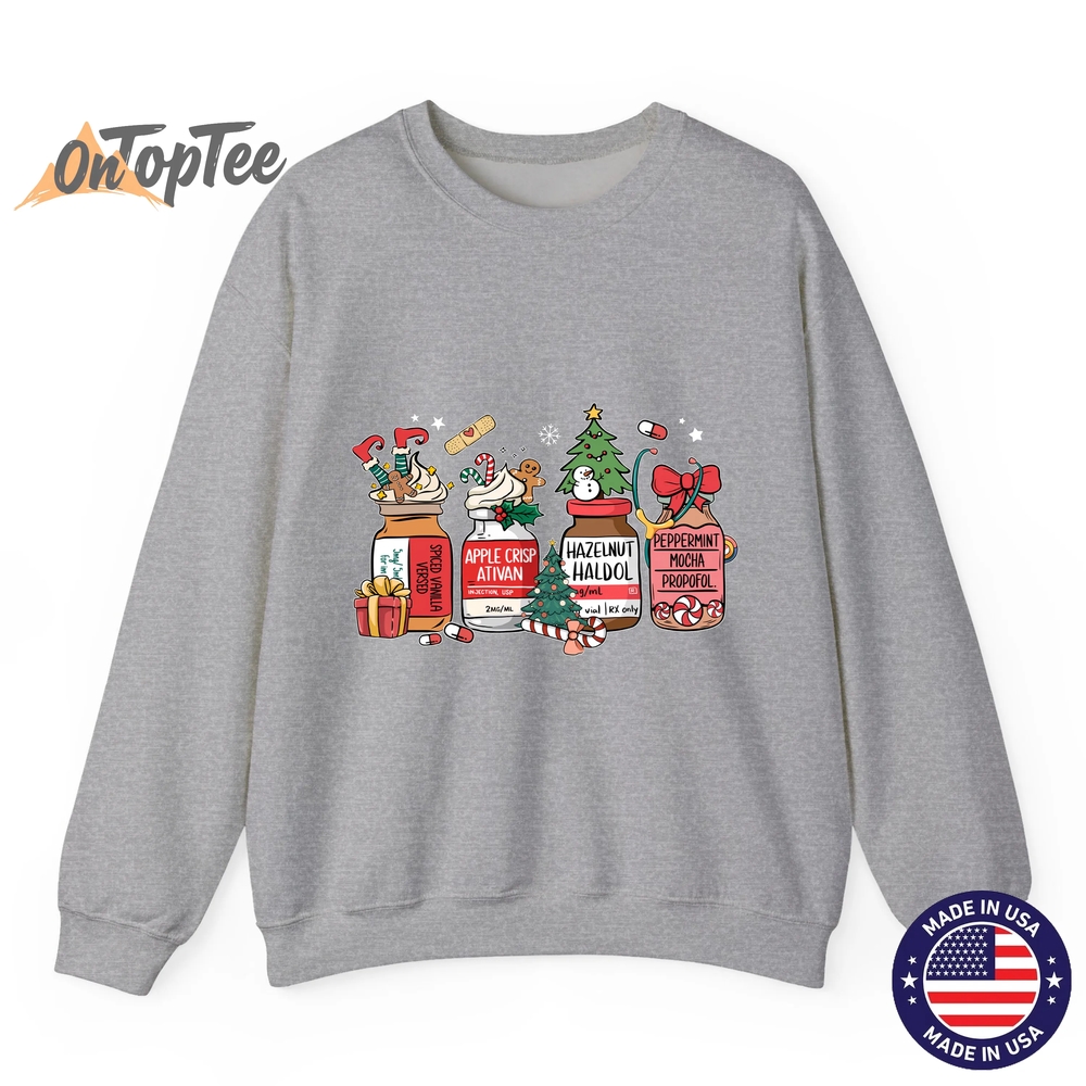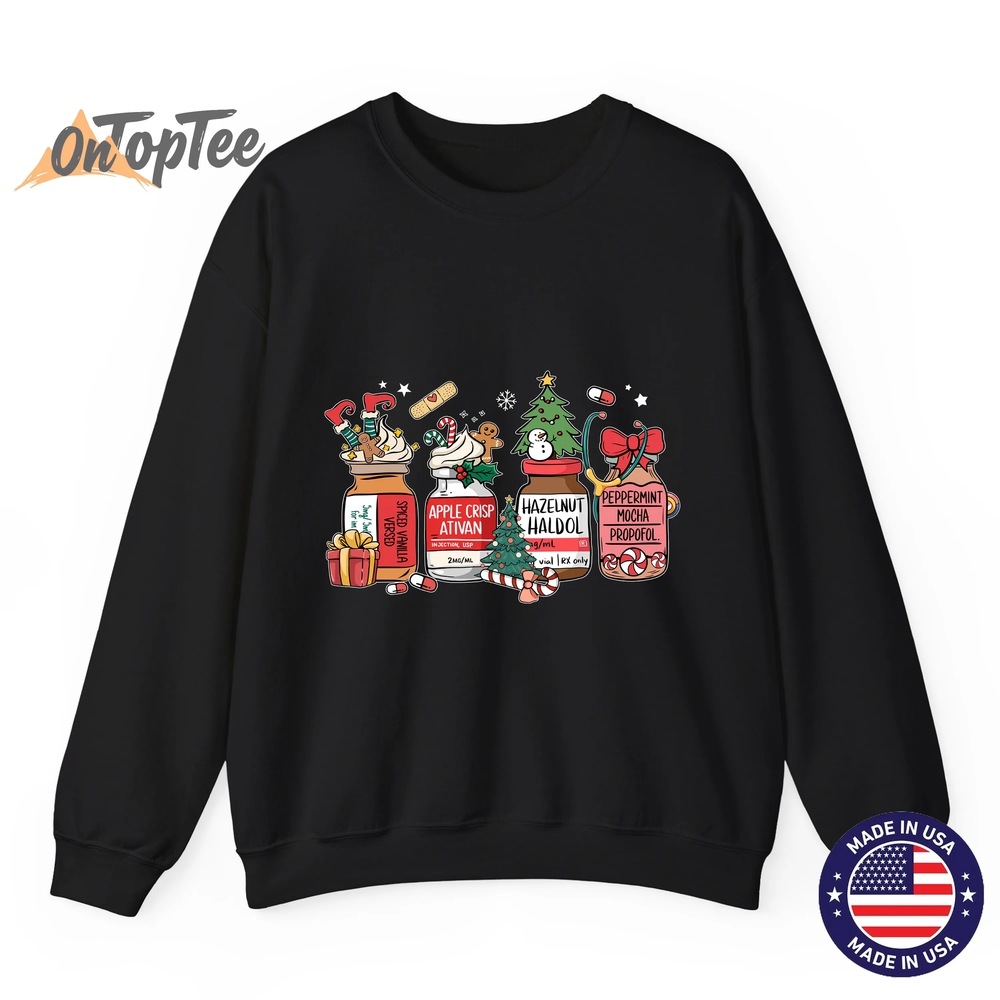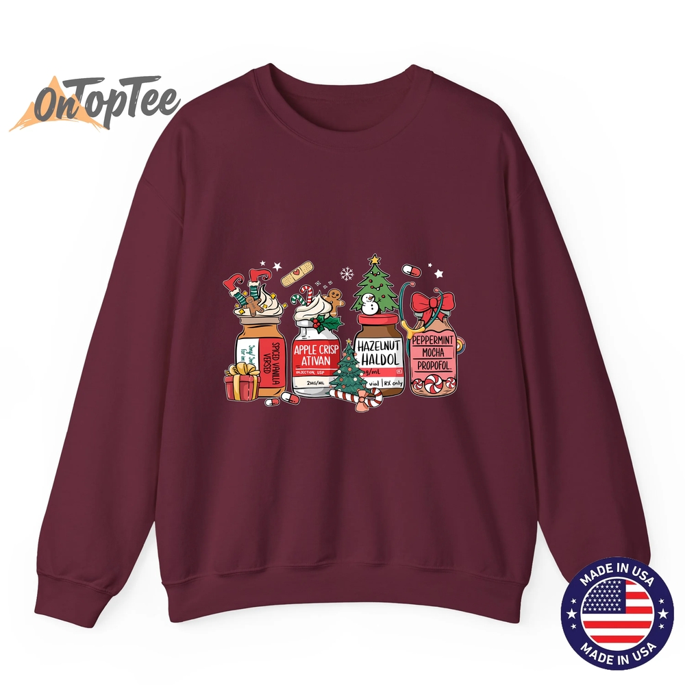 The Christmas Nurse Funny Peppermint Mocha Propofol RN Sweatshirt shirt is made from premium materials: