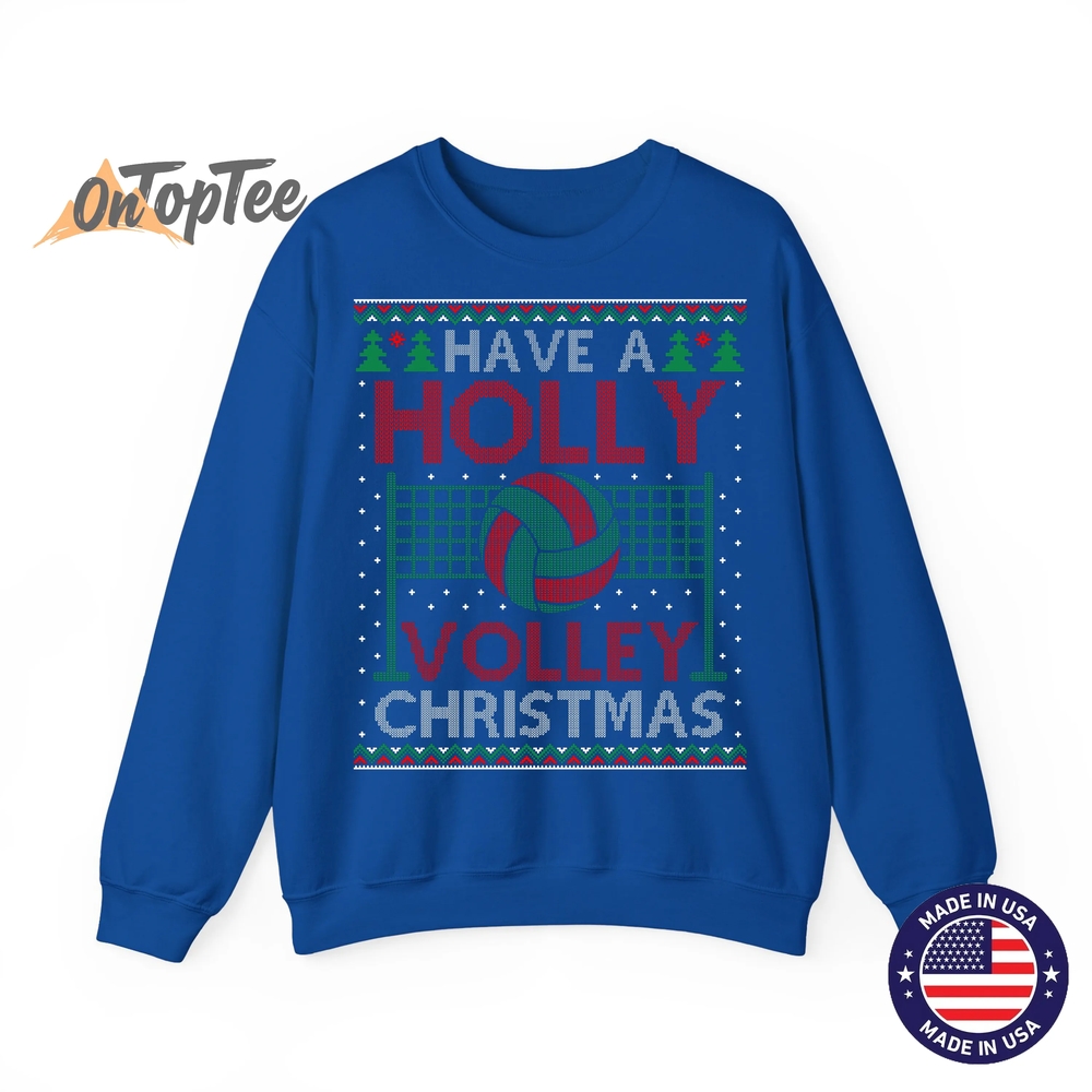 Have a look at the detailed information about Holly Volleyball Ugly Christmas Sweatshirt below!