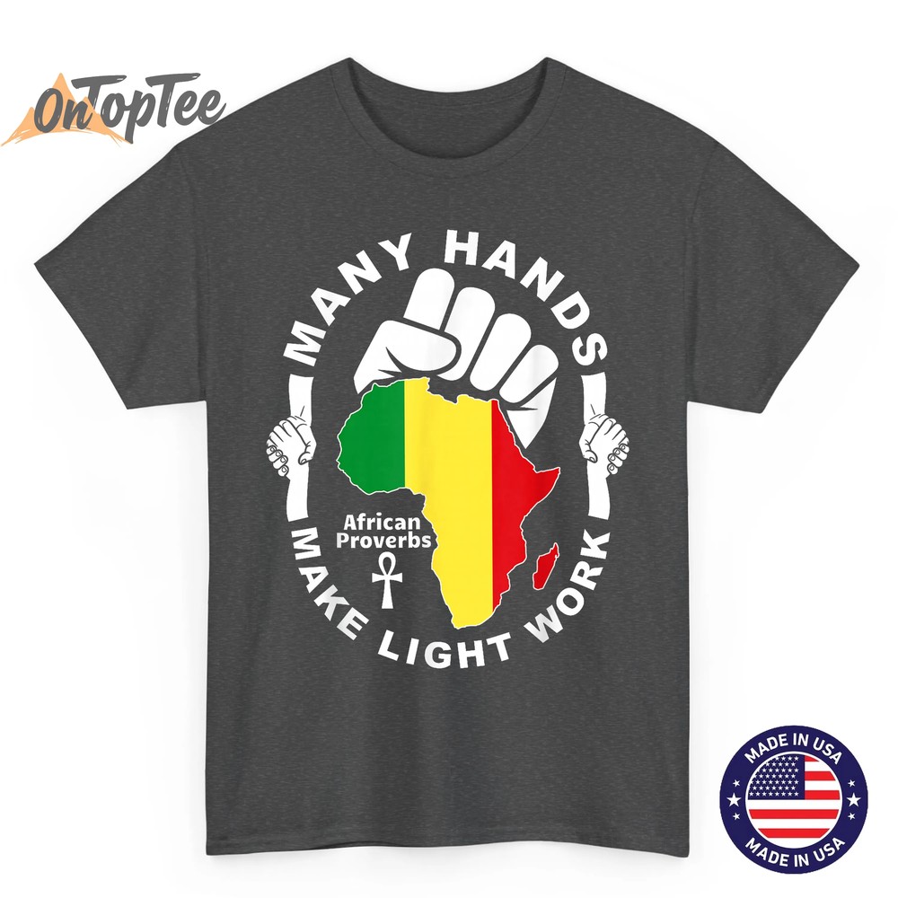 Get your Many Hands Make Light Work African Proverbs Pan Africanism T-Shirt today and wear your Black Pride with On Top Tee!