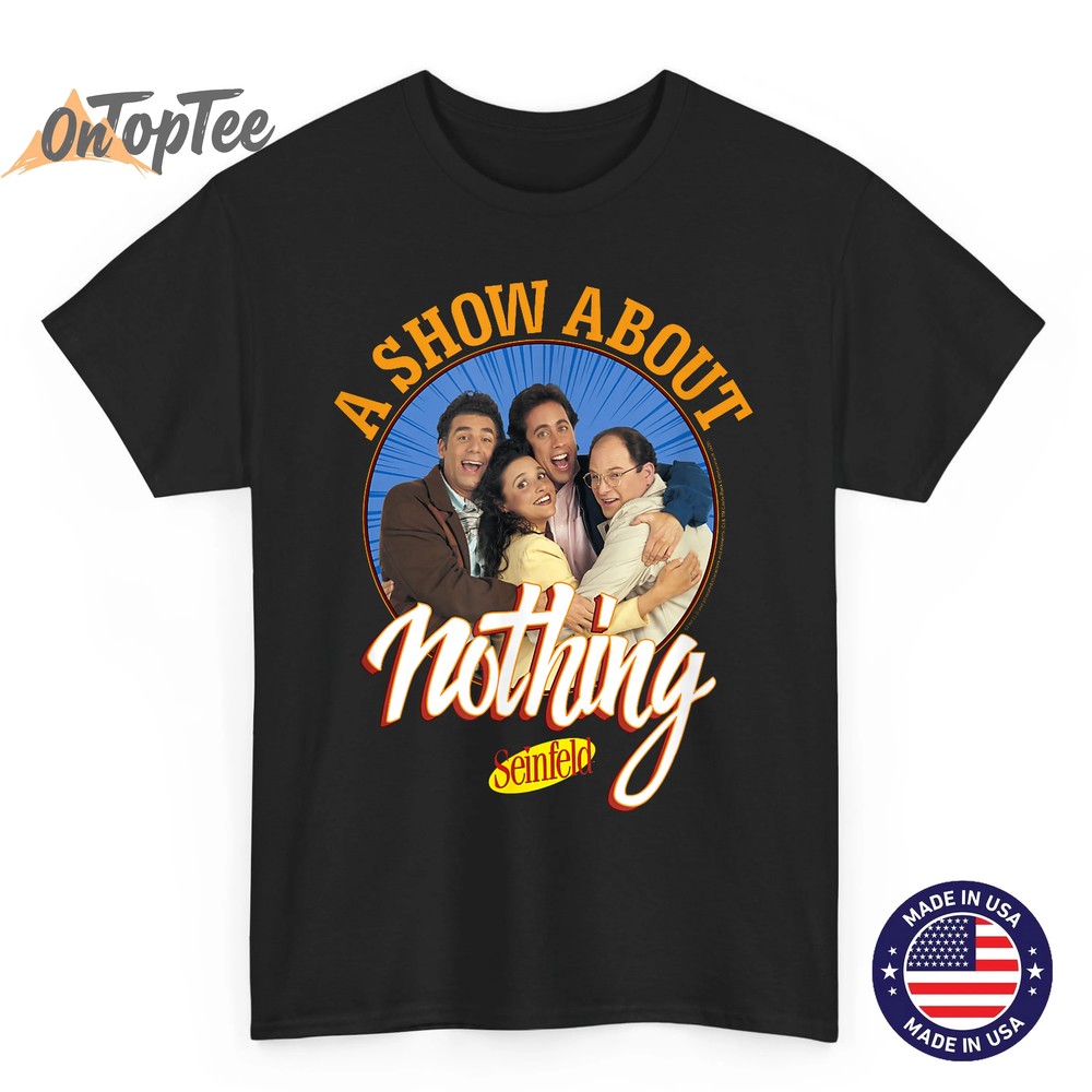 Order now and enjoy the perfect blend of style, comfort, and fandom with the Seinfeld: A Show About Nothing Circle Portrait T-Shirt.