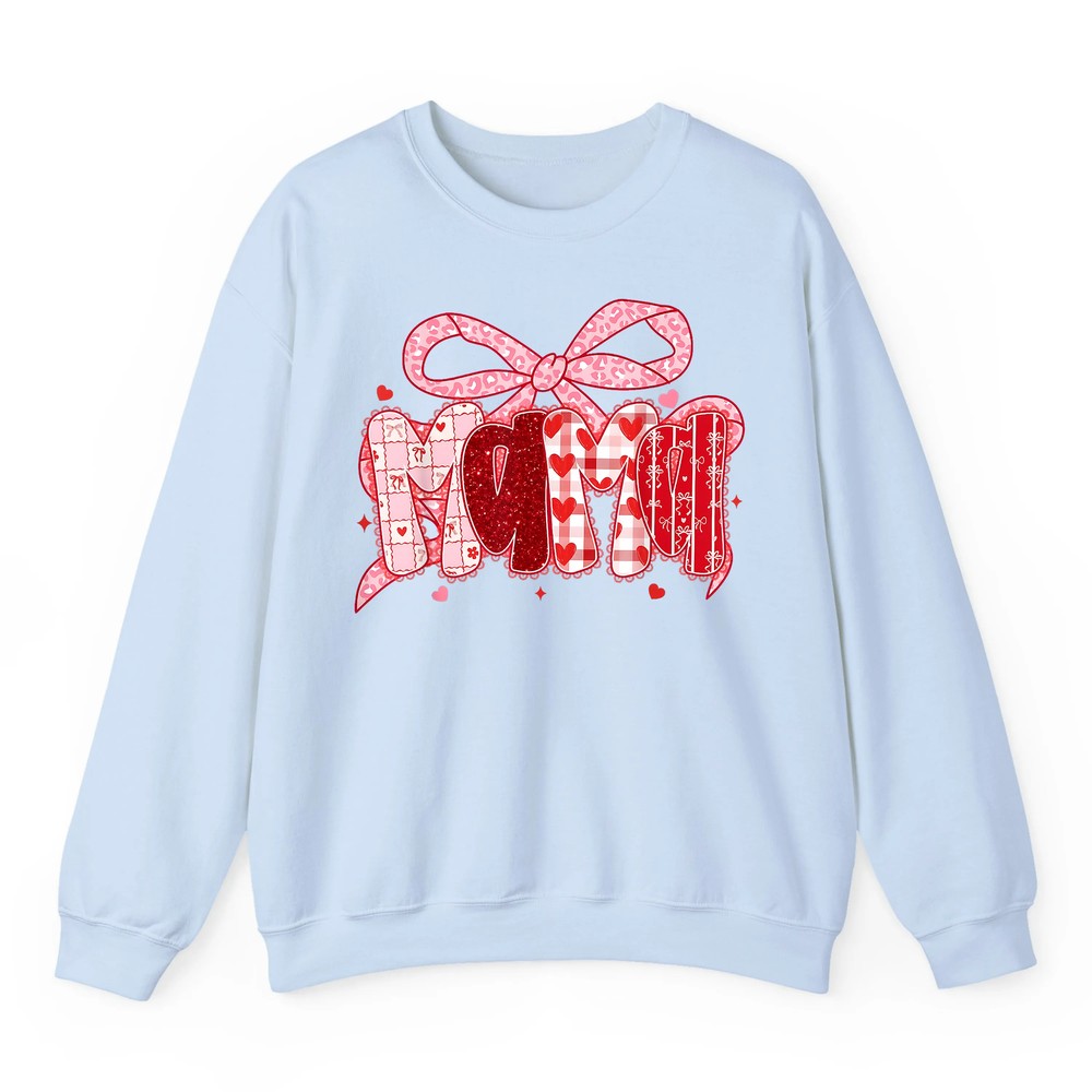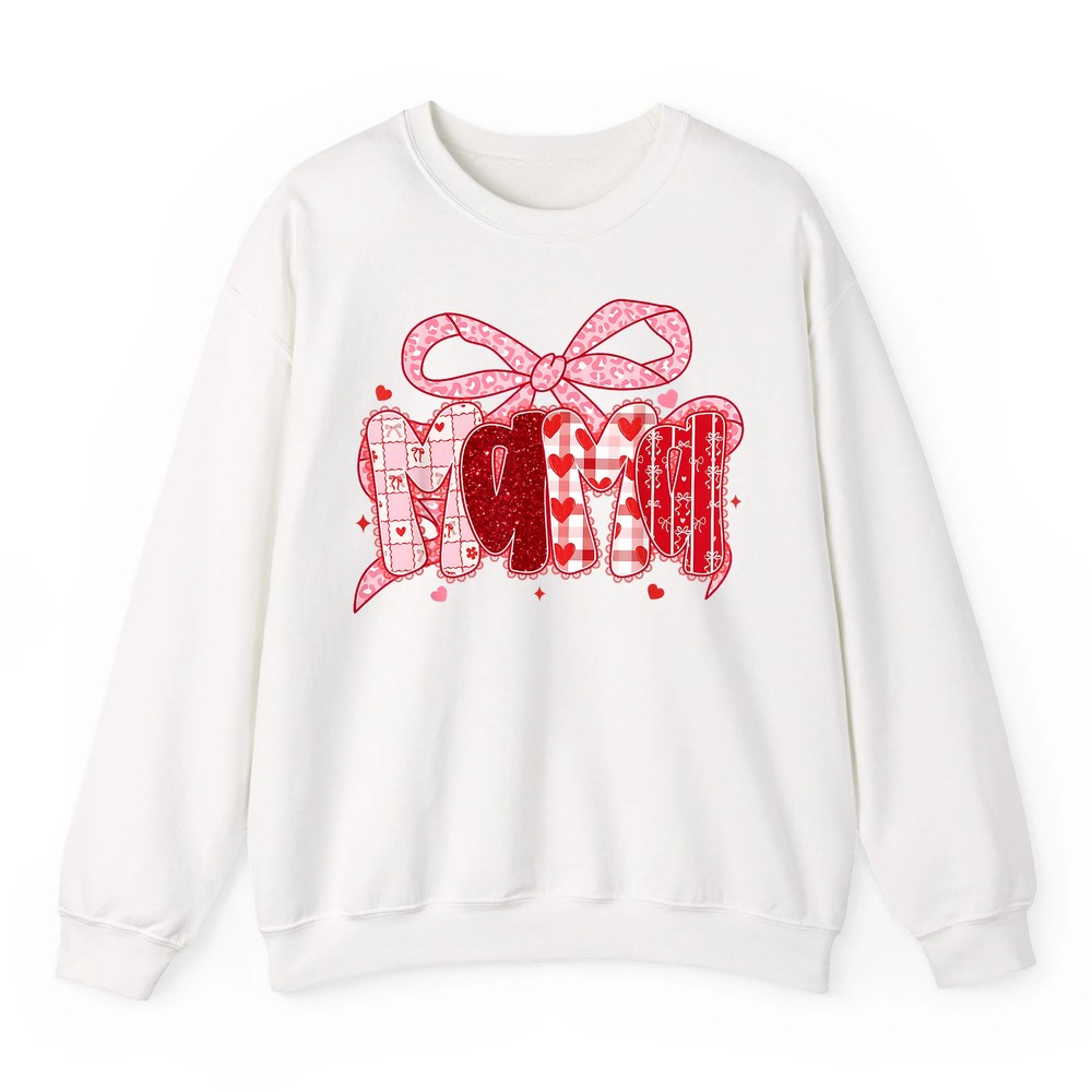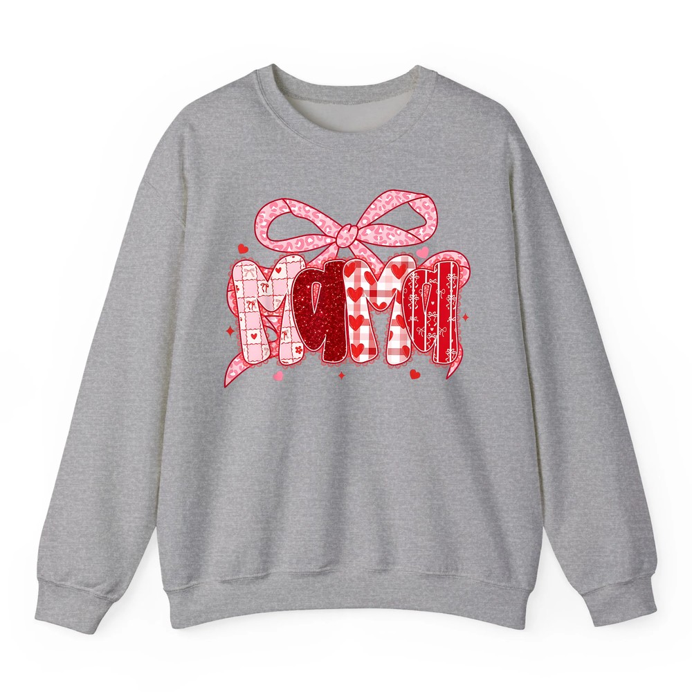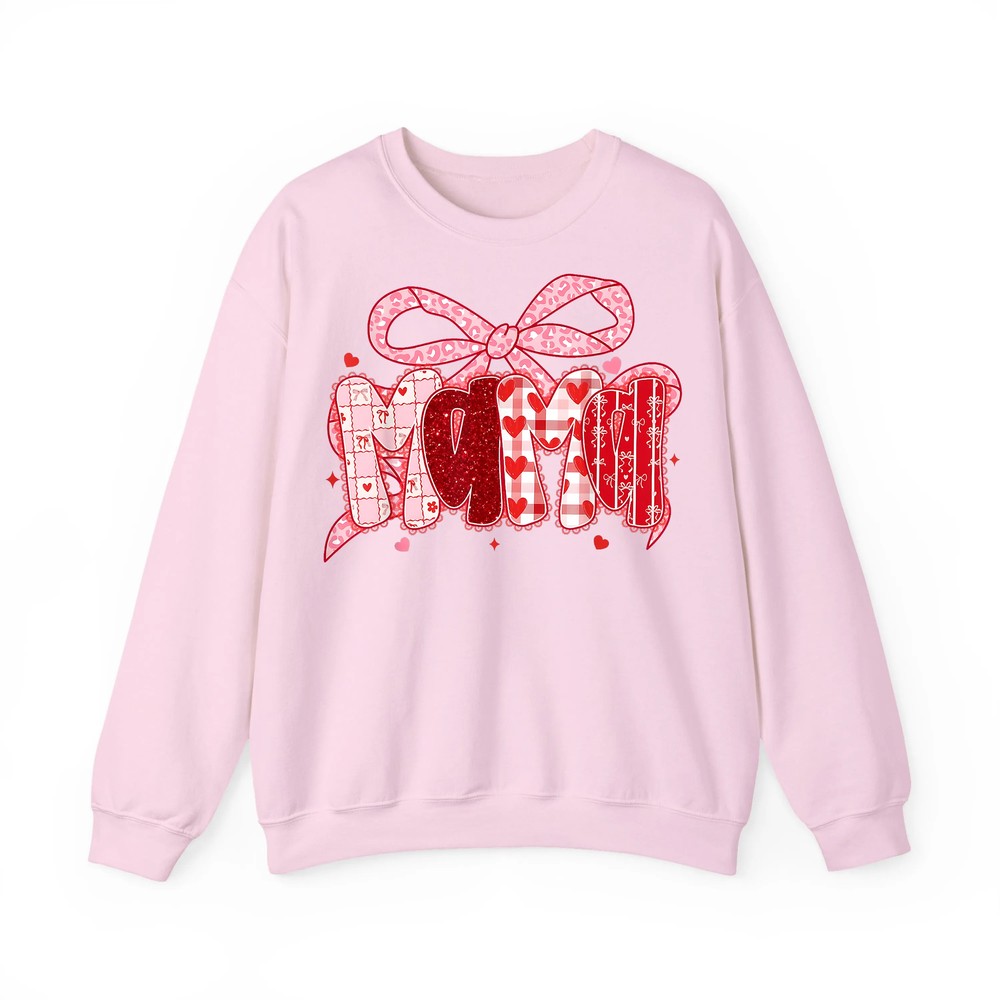 Embrace a look that’s both charming and comfortable—add the Valentine Mama Coquette Pink Bow Floral Mom Women Girl Sweatshirt to your cart today!